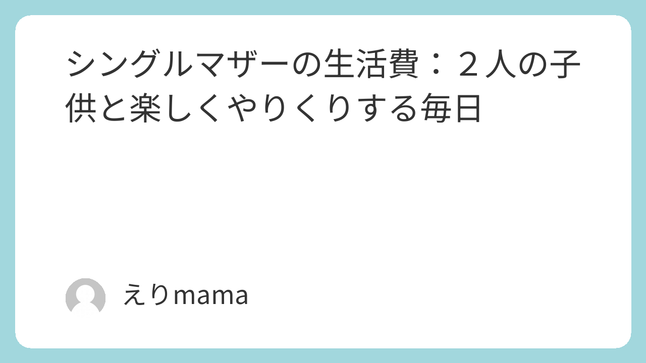 シングルマザー暦9年目のえりままです。私はシングルマザーとして2人の子供(小学6年&4年男子)を育てていますが、毎日子供たちと楽しく過ごしながら、生活費も工夫してやりくりしています。忙しい中でも、笑顔や充実感を忘れずに過ごすことが大切だと思っています。今回は、私の実際の収入と生活費をもとに、シングルマザー家庭での楽しいやりくり術や、日常の生活費についてシェアしたいと思います。少しでも役立つヒントが見つかれば嬉しいです!